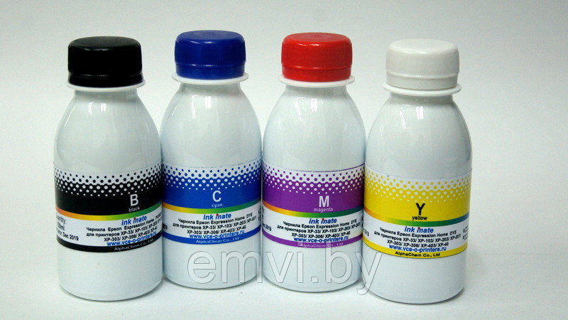 Чернила Epson комплект по 100мл. Для принтеров Epson Expression Home XP-33, XP-103, XP-203, XP-207, XP-303, XP-306, XP-403, XP-40, XP-423, XP-323, XP-313, XP-413 v8.1Производитель Ink-Mate.ЦветаBlack Pigment (Черный пигмент), Cyan (Голубой водорастворимый), Magenta (Пурпурный водорастворимый), Yellow (Желтый водорастворимый). Используется для моделей: Expression Home XP-33Expression Home XP-103Expression Home XP-203Expression Home XP-207Expression Home XP-303Expression Home XP-306Expression Home XP-313Expression Home XP-323Expression Home XP-403Expression Home XP-406Expression Home XP-413Expression Home XP-423Принтер Epson XP на 4 цвета самая распространенная на текущий момент домашняя модель принтера епсон. Epson пошел по пути струйной техники канон - используя в одной машине и пигментные и фоточернила. Мы предлагаем чернила разработанные специально для данной модели принтера. Их особенность в том чтобы давать максимальную работоспособность и качество печати принтера при долгой печати.Пигментные чернила для черного картриджа принтера Epson XP отличаются четкой печатью на обычной бумаге, стойкие к смытию водой, не сохнут при простое в работе.Фоточернила для печати фотографий при фотопечати на глянцевой бумаге дают сочные цвета специально для данной модели принтера, не сохнут и не забивают печатающую головку.